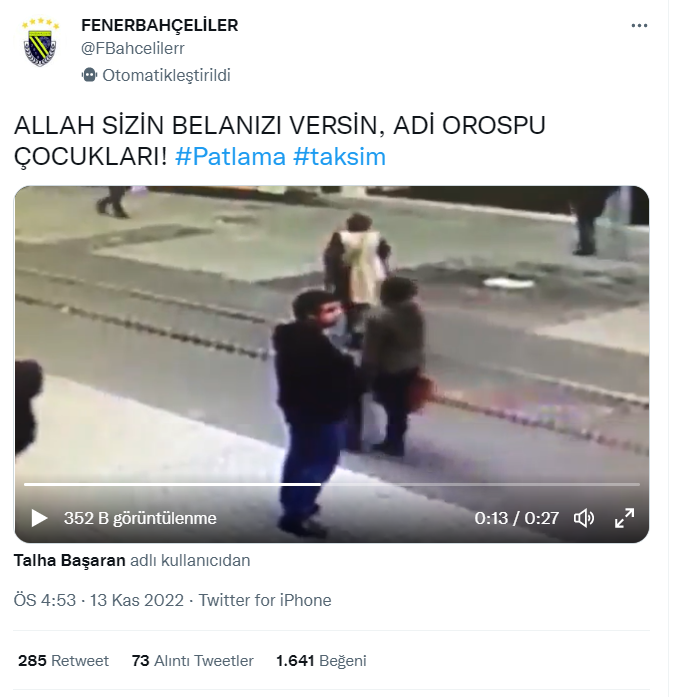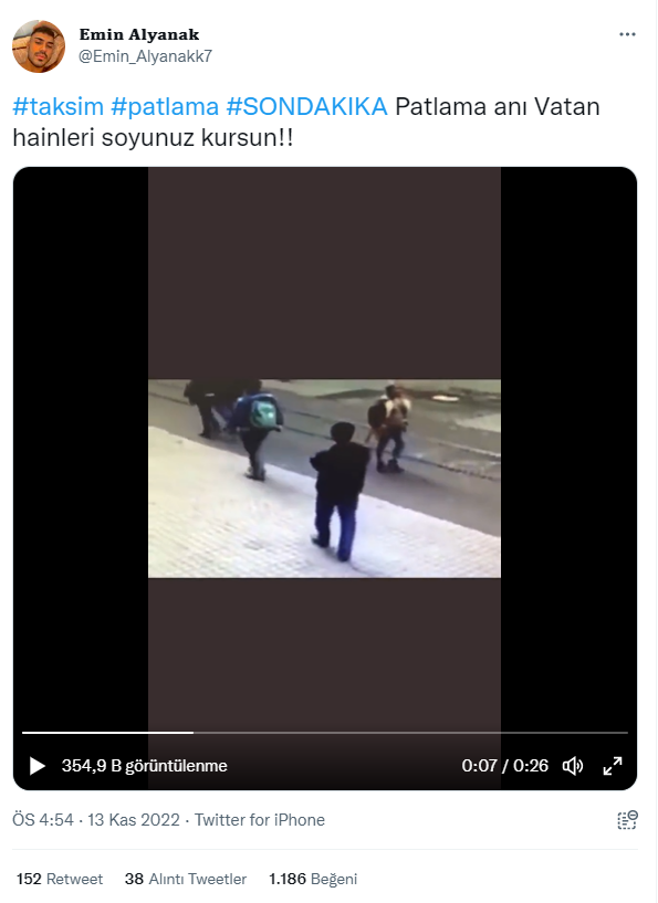 Görüntünün 13 Kasım 2022 Taksim’de gerçekleşen patlamayı gösterdiği iddiası