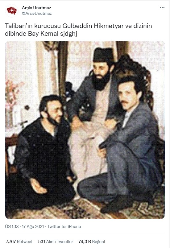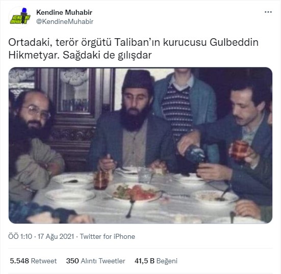 Cumhurbaşkanı Erdoğan ve Gülbeddin Hikmetyar’ın birlikte görüntülendiği bazı eski tarihli fotoğraflar, Gülbeddin Hikmetyar’ın “Taliban’ın kurucusu” olduğu iddiası ile paylaşılarak yüzlerce retweet ve binlerce beğeni ile çok fazla etkileşim aldı.
