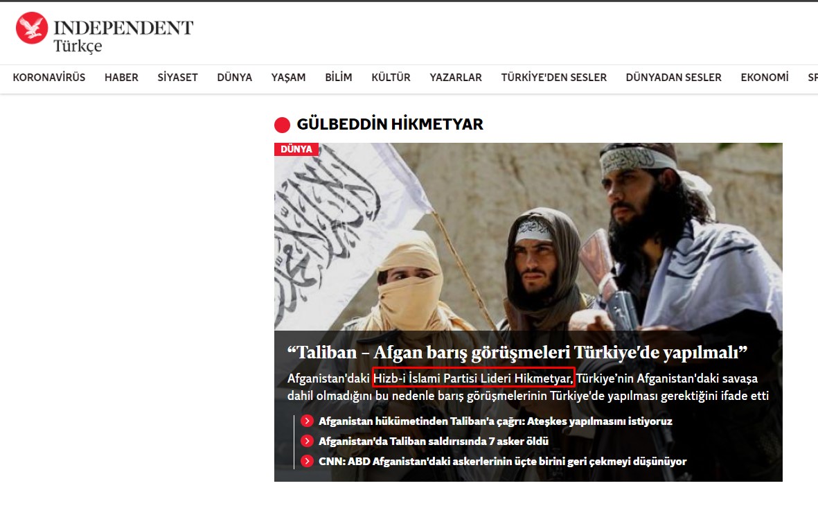 Afganistan eski başbakanı Gulbeddin Hikmetyar, Taliban’ın kurucusu değil; Hizb-i İslami’nin kurucusudur. Taliban’ın kurucusu ise Molla Muhammed Ömer’dir.