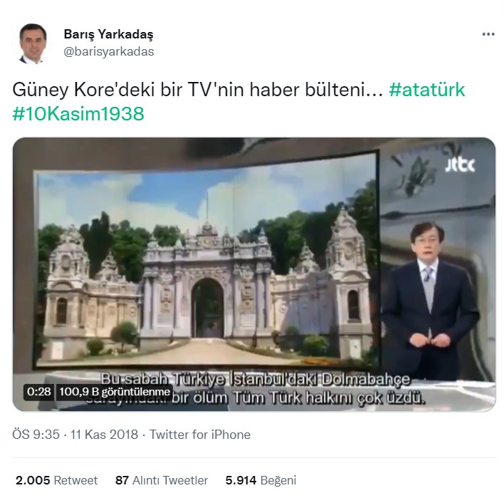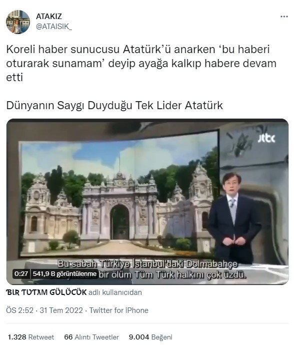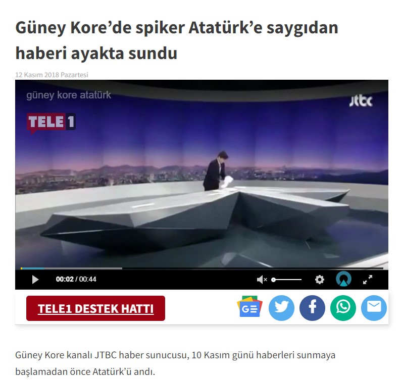 Güney Koreli spikerin haberi, Atatürk’e saygısından dolayı ayakta sunduğu iddiası