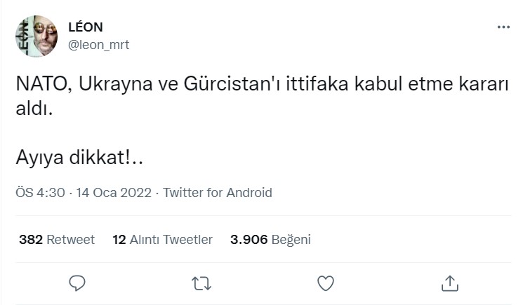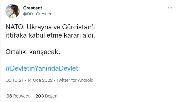 14 Ocak 2022’de paylaşılan haberlerde ve sosyal medya paylaşımlarında Ukrayna’nın ve Gürcistan’ın NATO’ya kabul edildiği iddia edildi. Bu kabulün üzerine iki ülkenin NATO’ya üye olduğu düşünüldü. Kabul edildiği ile alakalı yapılan pek çok paylaşımdan sonra sosyal medyada Rusya’nın bu karara nasıl tepki verebileceği konuşuldu. Konuşulanlara göre bu kararın bölgedeki tansiyonun daha yükselteceği bekleniyor. Dahası bazı kullanıcılar 3.Dünya savaşı çıkabileceğini belirtti.