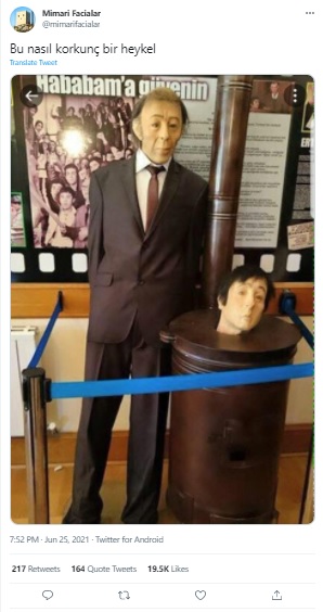 Yukarıda fotoğrafı yer alan Mahmut Hoca heykeli, 2014 yılında açılan, Üsküdar’daki Adile Sultan Kasrı’ndaki Hababam Sınıfı Müzesi’nde yer alıyor. Bir Yeşilçam klasiği olarak Hababam Sınıfı anısına yapılan müze ziyaretçilere açık. Sosyal medyada, müzede çekildiği iddia edilen fotoğraflar mevcut. Paylaşımlara bakıldığında müzede olduğu iddia edilen heykelin görselleri birbirinden oldukça farklı. Hepsini tek tek inceledik.