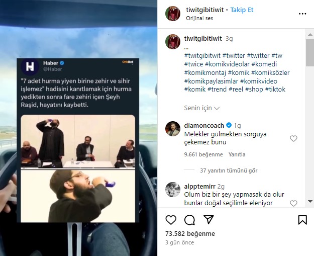 Son zamanlarda sosyal medyada ara ara dolaşıma giren bir içerik Instagram’da paylaşılan bir gönderi ile tekrar etkileşime girdi. İddiaya göre görüntülerdeki kişi sözde “7 adet hurma yiyen kişi, zehir tüketse bile işlemez” hadisini kanıtlamak için herkesin gözü önünde zehir içiyor ve ardından ölüyor.