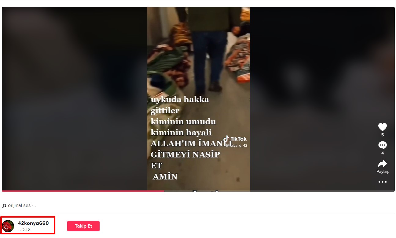 Ayrıca, ilgili videonun 12 Şubat 2023 tarihinde bir TikTok kullanıcısının hesabına yüklendiği de anlaşılıyor. Dolayısıyla yayılımda olan video güncel tarihli değil.