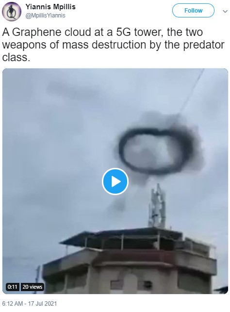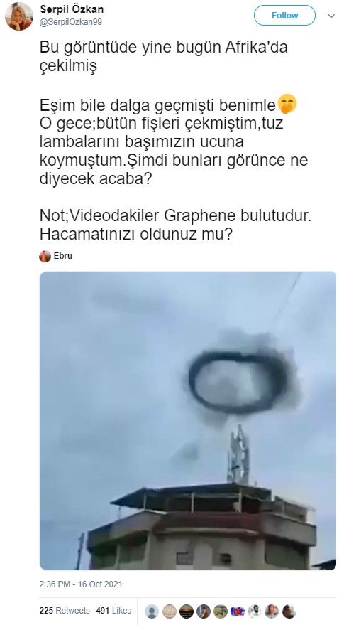 Covid-19 ile alakalı en yaygın paylaşılan iddialardan biri de şüphesiz Grafen ile ilgili. Geçtiğimiz günlerde bir kullanıcının Twitter hesabından paylaştığ görüntüler çokça etkileşim aldı. Gönderideki videolarda halka şeklindeki bir dumanın gökyüzüne yükseldiği görülmektedir. Kullanıcı bu videoları 5G ve Grafen maddesiyle ilişkilendirmiştir. Tweetlerin altında diğer kullanıcıların tartıştığını ve komplo teorileri ürettiğini görünce, bu dumanların nasıl oluştuğunu araştırdık.