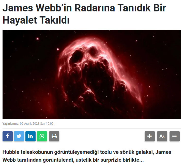 Geçtiğimiz günlerde James Webb’in görüntülediği iddia edilen görünümüyle bir ‘hayaleti’ andıran galaksi fotoğrafı gündemdeydi. Birçok kullanıcı tarafından paylaşılan bu gönderi kısa sürede viral hale gelmişti.
