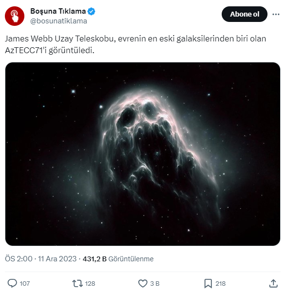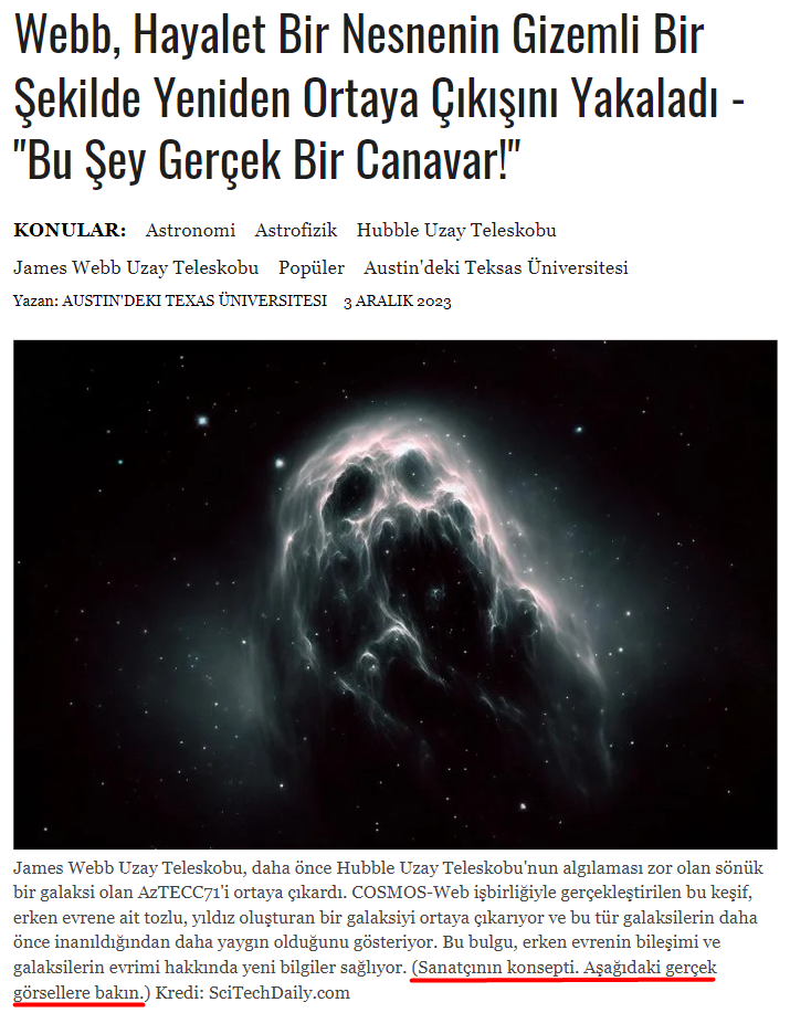 Öncelikle haber kaynaklarında söz konusu görüntü ile ilgili bir ipucu yakalıyoruz. Sözde AzTECC71 galaksisine ait olan bu fotoğrafı aramaya başlıyoruz.