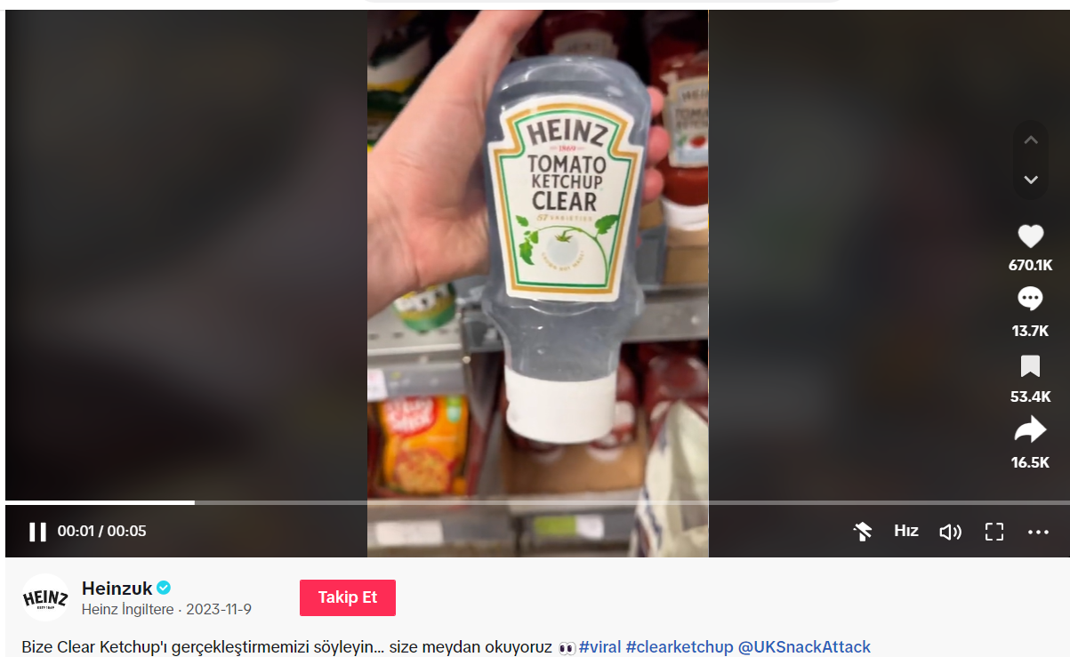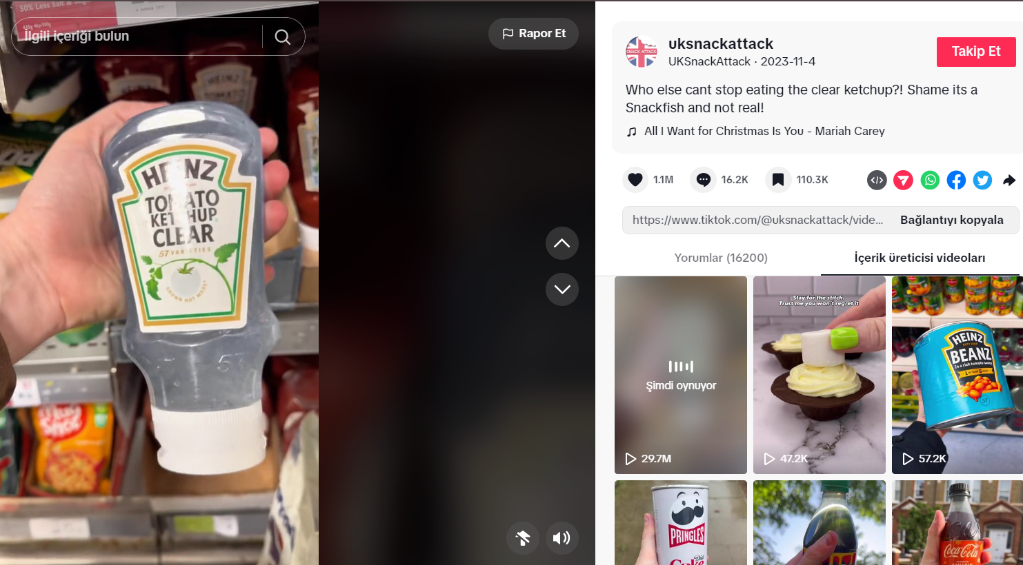 Heinz’ın resmi TikTok hesabına baktığımızda ise söz konusu videoya atıfta bulunarak paylaşım yaptığı görülüyor. Gönderide, firma UkSnackAttack isimli sayfaya karşılık “Şeffaf ketçabı gerçekleştirmemizi söyleyin… Size meydan okuyoruz.” demiş. Heinz’ın bu yanıtıyla da şeffaf ketçabın gerçek bir ürün olmadığı ortaya çıkıyor.