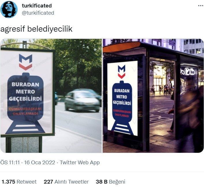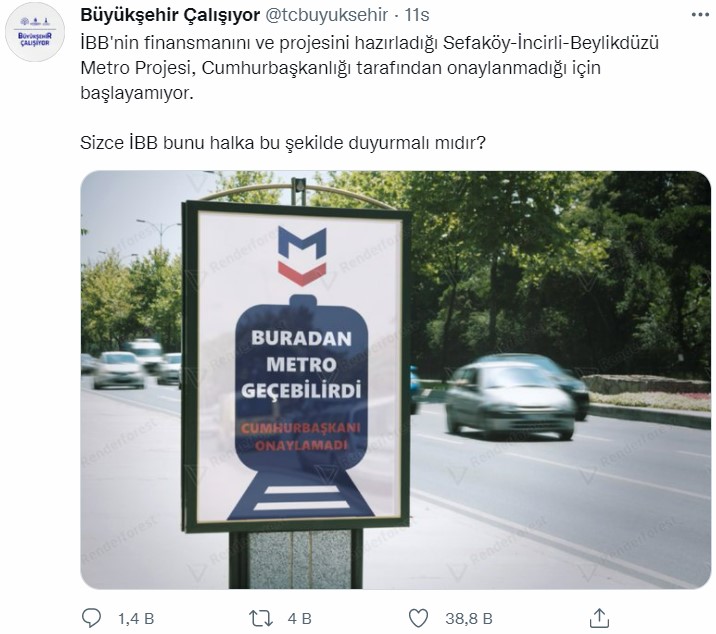 İBB Başkanı Ekrem İmamoğlu’nun metro yapımı ile ilgili attığı bir tweet, Twitter’da bir süredir gündemin en tepesinde yer alıyor. Ekrem İmamoğlu’nun bu paylaşımından sonra ‘Büyükşehir Çalışıyor’ ve ‘turkificated’ isimli Twitter sayfaları bazı görseller paylaştı. .