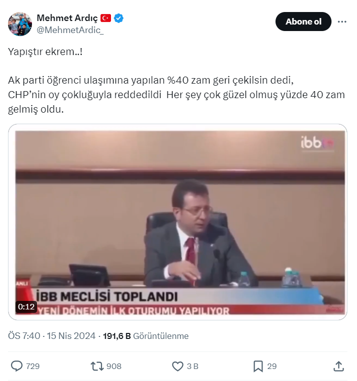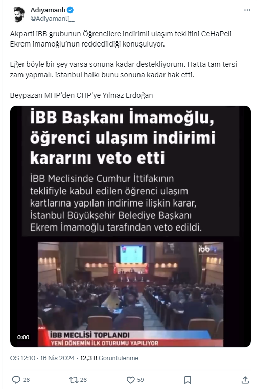 Sosyal medyada bu minvalde yapılan paylaşımlardan biri de ‘öğrenci ulaşımına yapılan %40 zam geri çekilsin’ kararıydı. AK Parti tarafından verilen indirim teklifinin CHP’nin oy çokluğuyla reddedildiği iddia edildi.