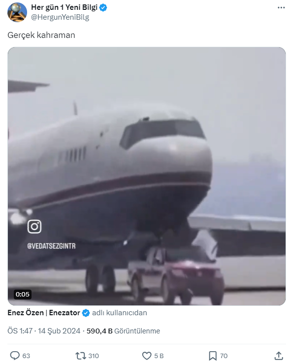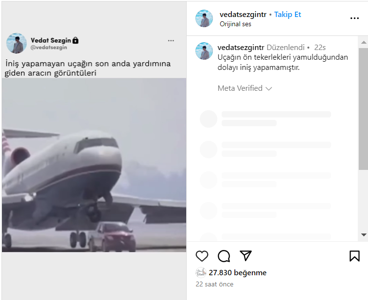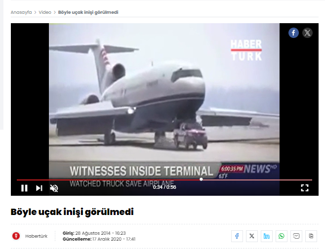 Sosyal medyada paylaşılan ve kısa süre içerisinde yüksek etkileşim alan bir videoda, iniş takımları arızalanan uçağın bir kamyonet tarafından kurtarıldığı anı gösterdiği öne sürüldü.