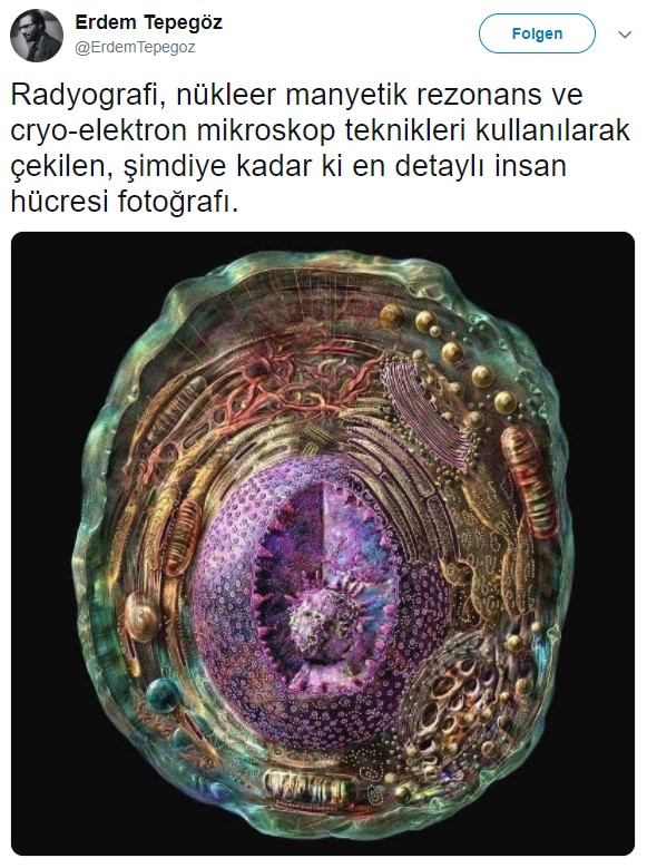 Yabancı kaynaklarda da, “şimdiye kadar çekilmiş en ayrıntılı insan hücresi” olduğu söylenen bu fotoğrafın zaman zaman yayılımda olduğunu görmek mümkün.