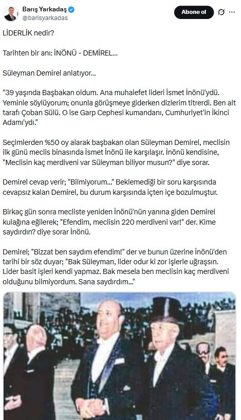 İsmet İnönü ve Süleyman Demirel’in yaşadığı bir anı olarak sosyal medyada dolaşıma giren “liderlik dersi” temalı anlatıyı inceledik.