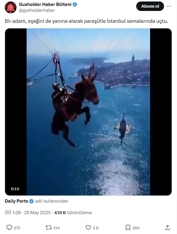 Bir eşeğin İstanbul semalarında paraşütle uçtuğunu gösteren video gerçek mi?