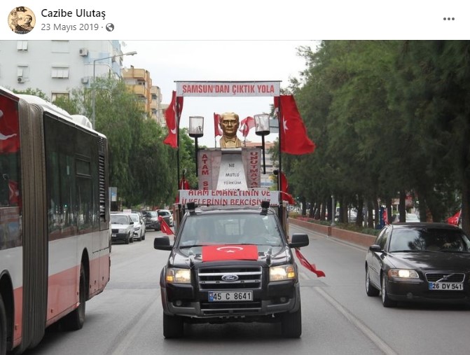 Herhangi bir bilgi bulamıyoruz ancak Ford Ranger model olduğunu analiz ettiğimiz bu aracın plakası dikkatimizi çekiyor. “45”, Manisa’nın plakası olduğu bilgisiyle bu sefer “Manisa”, “Atatürk büstü”, “Türk bayrağı” gibi anahtar kelimelerle konuyu arıyoruz. Karşımıza 2019’dan bazı haberler çıkıyor.