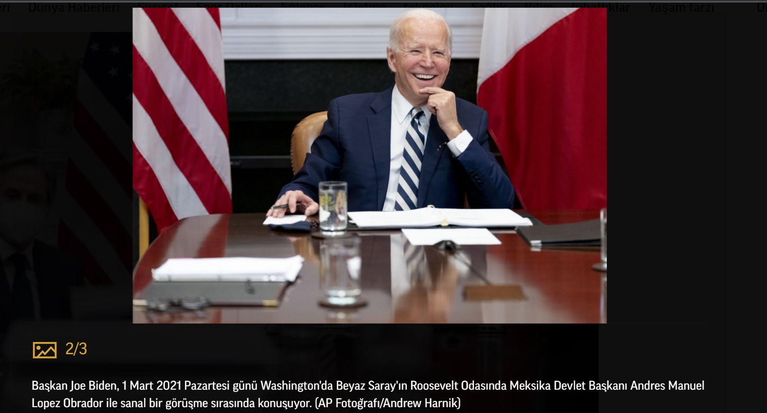 Artık ABD Başkanı olan Biden’ın 2021 yılında Meksika Devlet Başkanı López Obrador ile yaptığı sanal toplantıdan servis edilen fotoğraflarda saatini taktığı kolunda, 2020 tartışmasında görülen tespihin daha net bir görüntüsüne ulaşıyoruz.