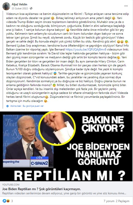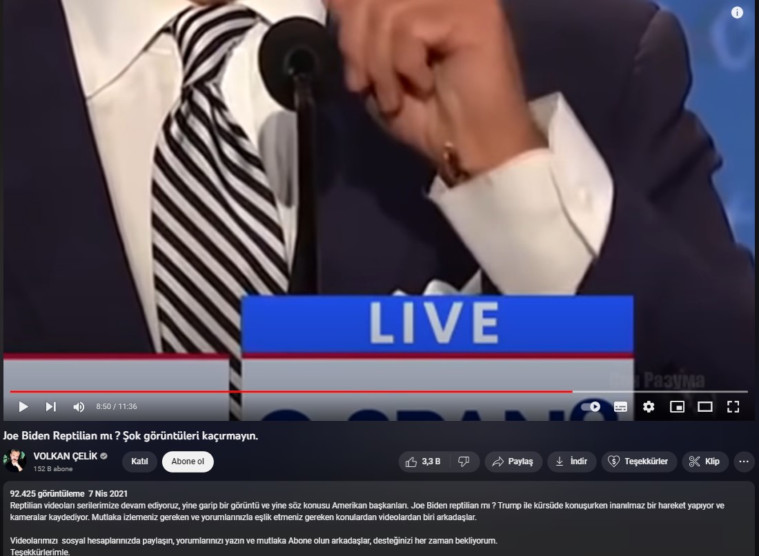 Biden’ın da yukarıda sözde reptilian olduğunu gösteren iddia videosunu inceledik.