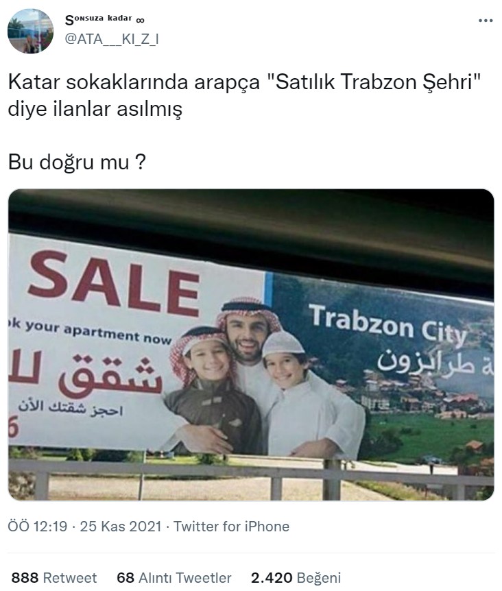 Katar’da “Satılık Trabzon şehri” yazılı billboard görüldüğü iddiası
