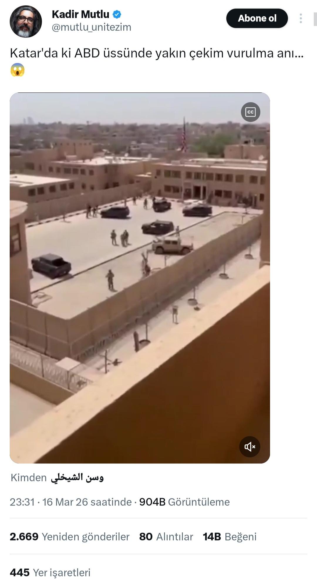 Sosyal medyada paylaşılan bir videonun, İran’ın Katar’daki ABD askeri üssüne düzenlediği saldırıyı gösterdiği iddia edildi. Söz konusu video kısa sürede binlerce etkileşim aldı.
