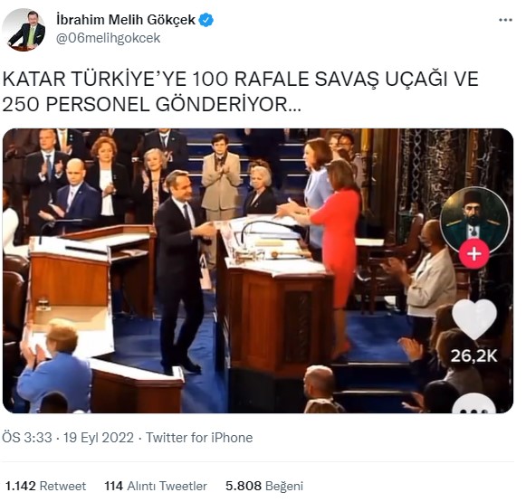 Siyasetçi ve Ankara Büyükşehir Belediye’sinin eski Başkanı Melih Gökçek geçtiğimiz gün Twitter hesabı üzerinden bir paylaşımda bulundu. Paylaşımda Katar’ın Türkiye’ye 100 Rafale savaş uçağı ve 250 personel gönderdiği iddia edildi.