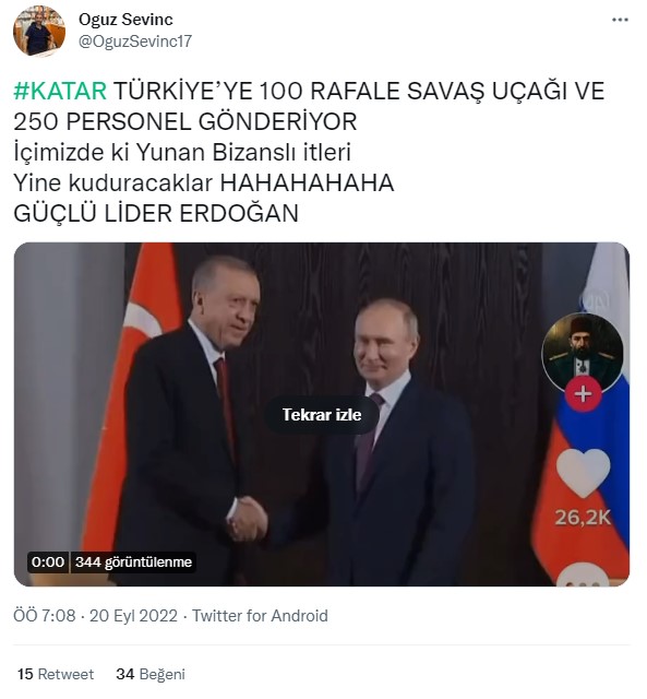 Paylaşılan tweet içerisindeki videoda ise, “250 tane asker, sayısı belli olmayan savaş uçağının Türkiye’ye geleceği ve 250 personele göre en az 100’ün üzerinde uçağın geleceği” öne sürülmüş.