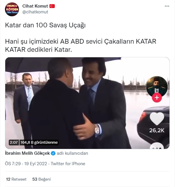 — İbrahim Melih Gökçek (@06melihgokcek) September 19, 2022