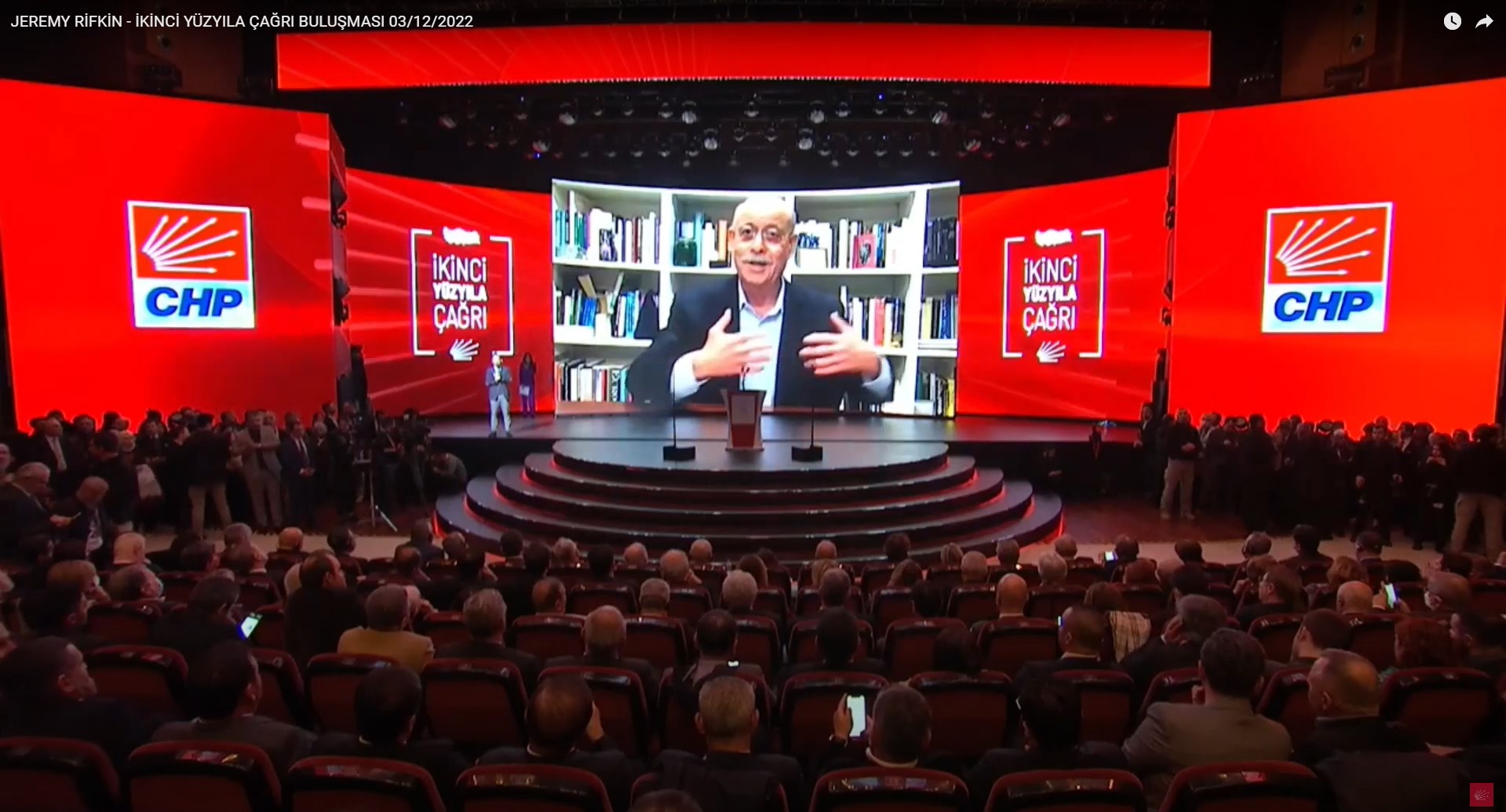 Jeremy Rifkin, CHP’nin “İkinci Yüzyıla Çağrı” programına da bilgisayar aracılığıyla uzaktan katılmıştı.