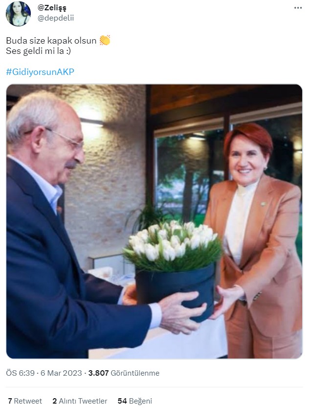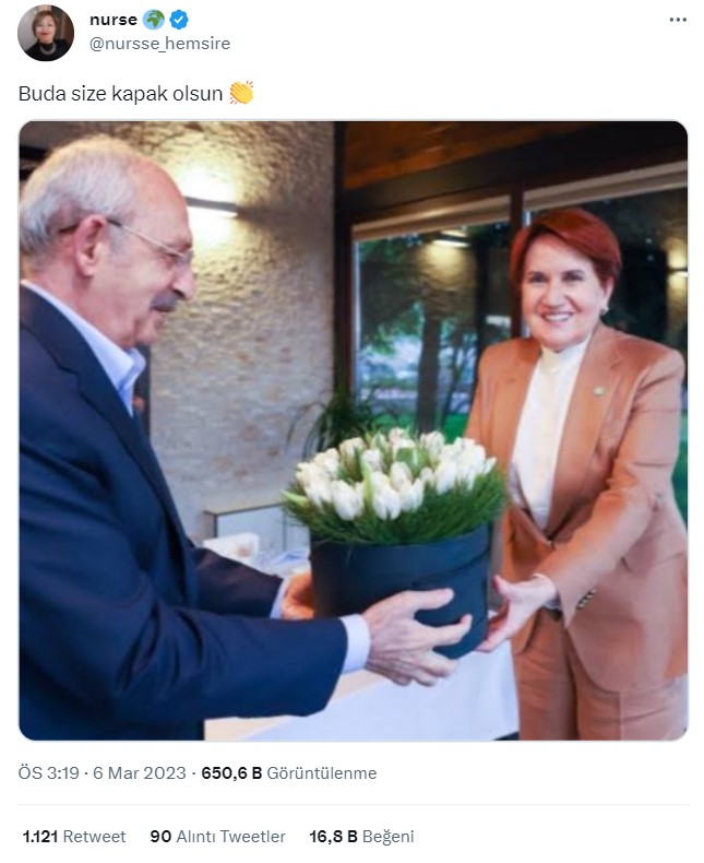 Tüm bu sürecin ardından Kılıçdaroğlu’nun Akşener’e çiçek verdiği anı gösteren fotoğrafın tekrar yayılıma girdi. Fotoğraf 2 Mart’tan bu yana yaşanan ‘anlaşmazlıklar’ ile ilişkilendirildi.