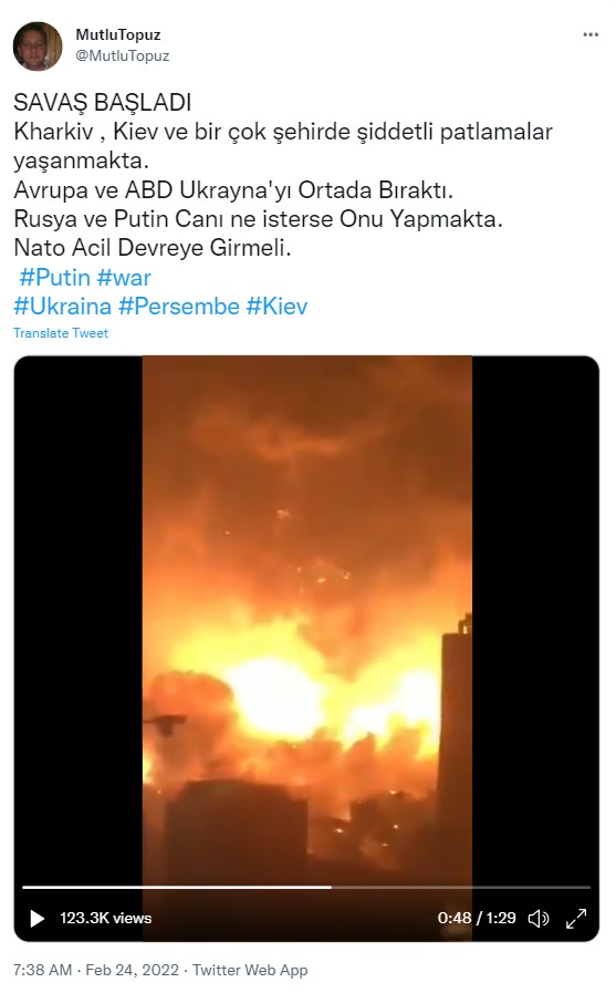 İddiada paylaşılan videoyu tarattığımızda görüntülerin Ukrayna/Kharkiv değil Çin’de gerçekleşen bir patlamaya ait olduğunu gördük. Patlama, 2015’te Çin’in Tianjin kentindeki limanda meydana gelmiş. Ukrayna’da yaşananlar ile herhangi bir ilgisi bulunmadığı için iddia yanlış.