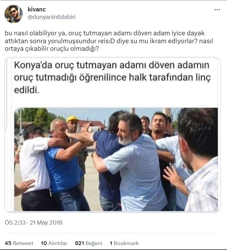 Ramazan ayı başladı ve sosyal medyada oruçla ilgili paylaşımlar arttı. Bu paylaşımlardan biri de her yıl Ramazan ayında gündeme gelen oruç tutmayan kişilerin darp edildiği iddiası.