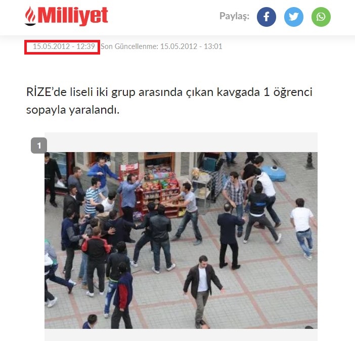 Söz konusu bu ikinci fotoğraf da 2012 yılındaki haberlerde lise kavgası açıklaması ile yer alıyor.