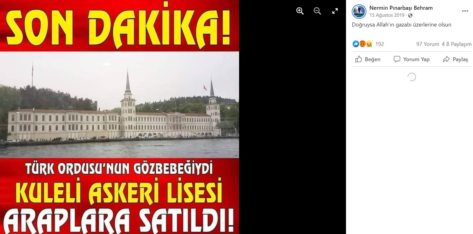 Geçmiş yıllardan bu yana sosyal medyada yayılan bir söylemde İstanbul Çengelköy’de yer alan Kuleli Askeri Lisesinin yabancılara satıldığı öne sürülüyor.