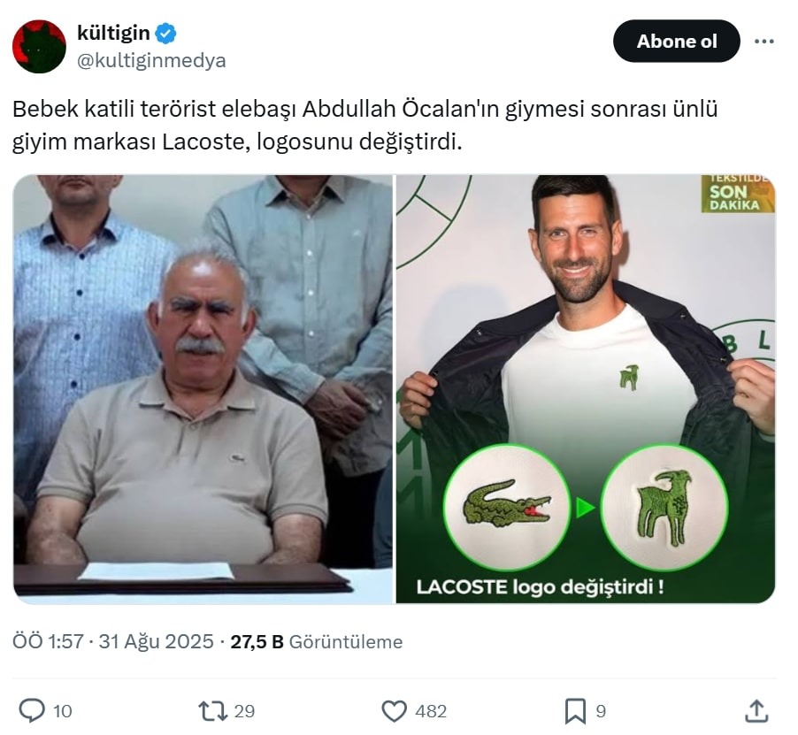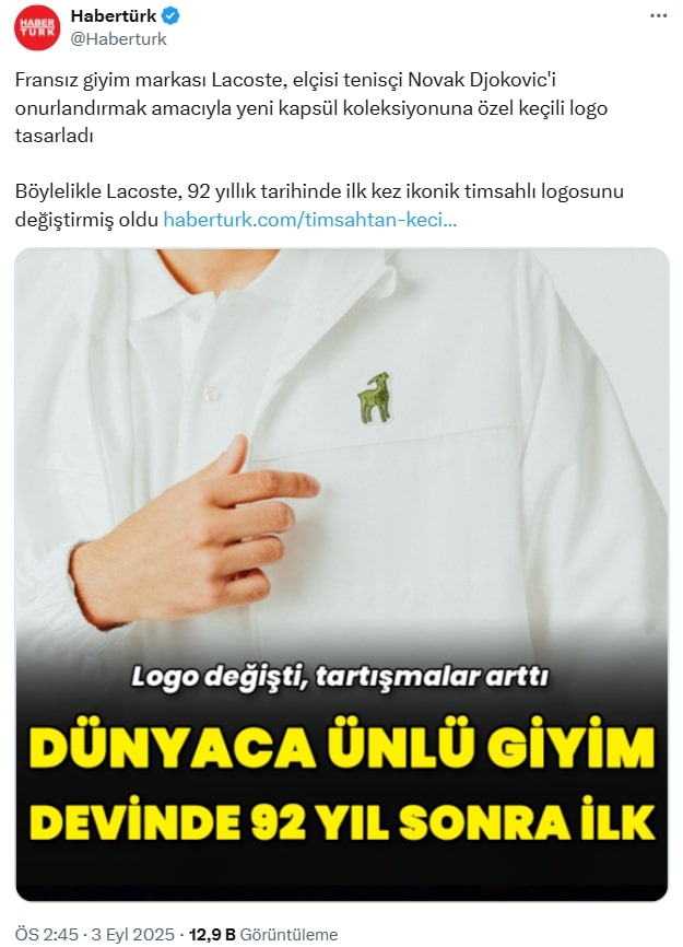 - Djokovic için yapılan keçi logosu da kalıcı bir uygulama değil. 2025’te çıkarılan özel kapsül koleksiyon için kullanılan bu logo, Novak Djokovic’in “GOAT” (Greatest of All Time) unvanına gönderme yapan sınırlı süreli bir tasarım. Yani markanın kalıcı logosu hâlâ timsah.
