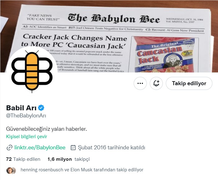 The Babylon Bee, 7 Haziran’da YouTube’dan paylaştığı haberin yazılı metnini 10 Mayıs’ta web sitesinden de paylaşmıştı.