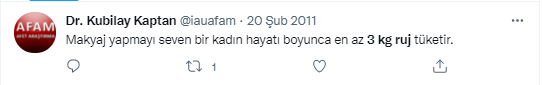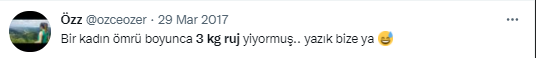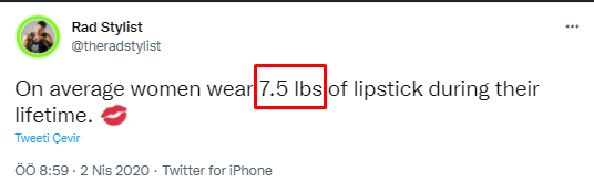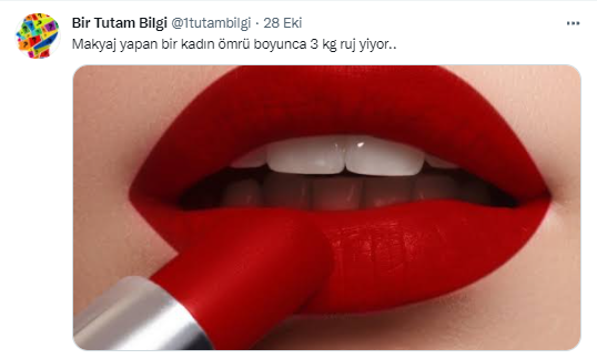 - 2005- The Guardian: “Ortalama bir kadın ömür boyu beş kilo ruj yer.”