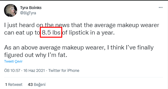 Snopes’e göre, bir kadının ne kadar ruj yuttuğuna dair bir anlaşmaya varılamamış. Söylentiyi farklı şekillerde duymakla beraber, sayı 3 ila 10 pound (Snopes analizi pound üzerinden ele alındığından biz de rakamlara bu şekilde yer vereceğiz.) arasında değişiyor ve bu iddia kulağa düzgün gelse de mantığa uymuyor.