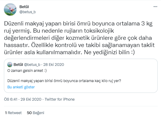 Snopes’în analizinde bir başka araştırmadan bahsediliyor. 1990 yılında, Avustralya’nın Canberra kentindeki Ulusal Sağlık ve Tıbbi Araştırma Konseyi tarafından yapılmış ve ortalama bir kadının düzenli bir kullanıcı olduğu takdirde yaşamı boyunca 500 ila 1.500 gram ruj yutmayı bekleyebileceğini iddia edilmiş. Tüp başına 3 gram kullanıldığında bu, 167 ila 500 tüp ruj anlamına gelir; bu da, her bir kalıntısının kullanıcı tarafından yutulması gereken yıllık 3 ila 9 tüpe karşılık gelir.