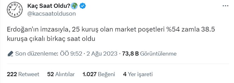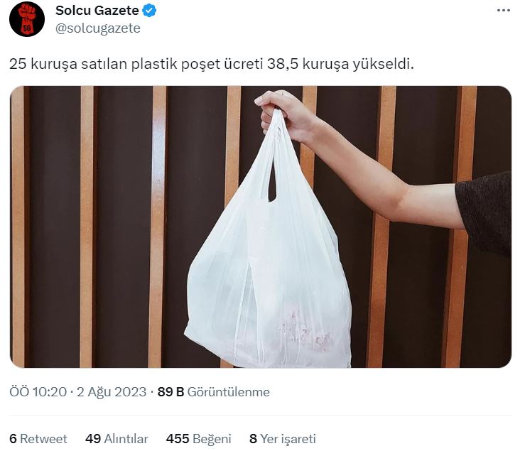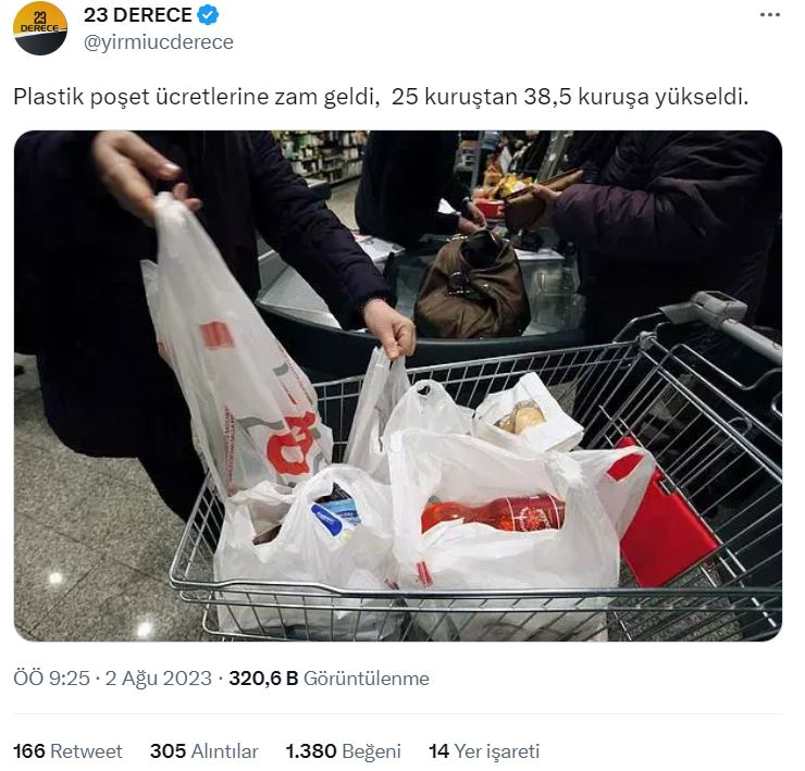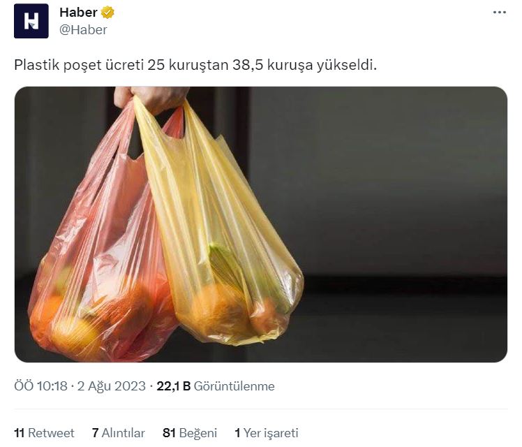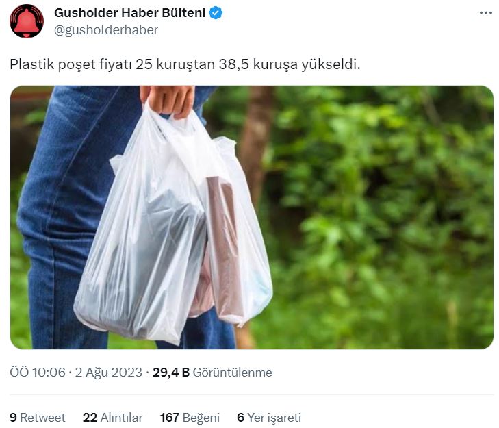 - İddia 2 ağustos 2023 tarihinde yeniden yayılıma girdi ancak 2 Ağustos 2023 tarihli Resmi Gazete ‘de verilen plastik poşet katılım payı tutarında bir değişiklik olmadığı görülüyor.