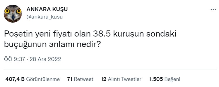 - Bu kararla, marketlerin piyasaya süreceği poşet karşılığında devlete ödenecek tutar 38,5 kuruş olarak güncellendi.