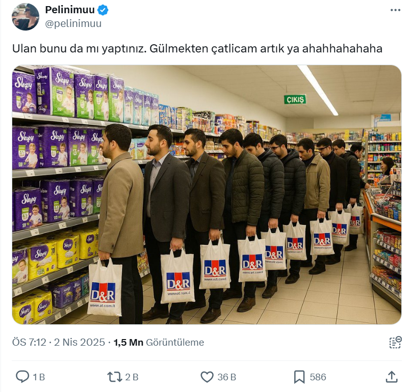 Markette D&R poşetleriyle sıralanan insanları gösteren fotoğraf gerçek mi?