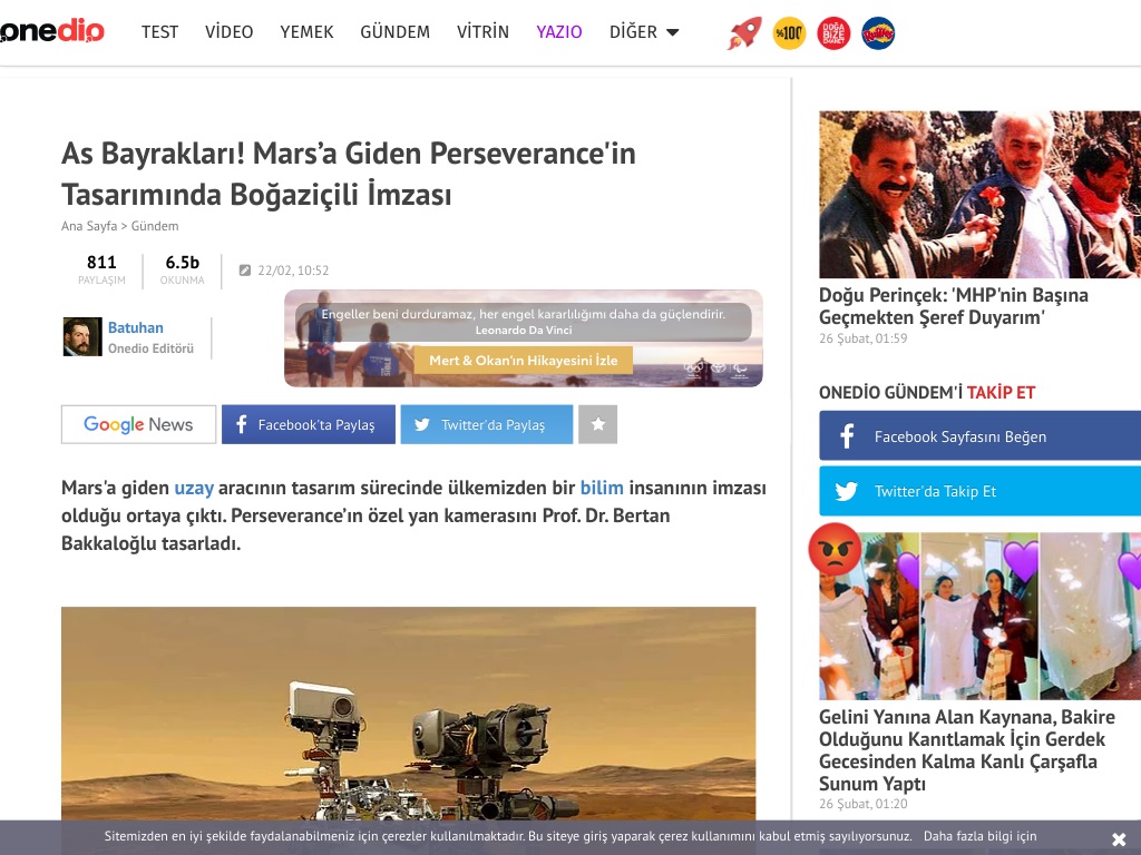 İddianın doğruluğunu Prof. Dr. Bertan Bakkaloğlu’na sorduk ve Mars’a giden Perseverance’ın özel yan kamerasını Prof. Dr. Bertan Bakkaloğlu’nun tasarladığı iddiasının doğru olmadığını öğrendik.