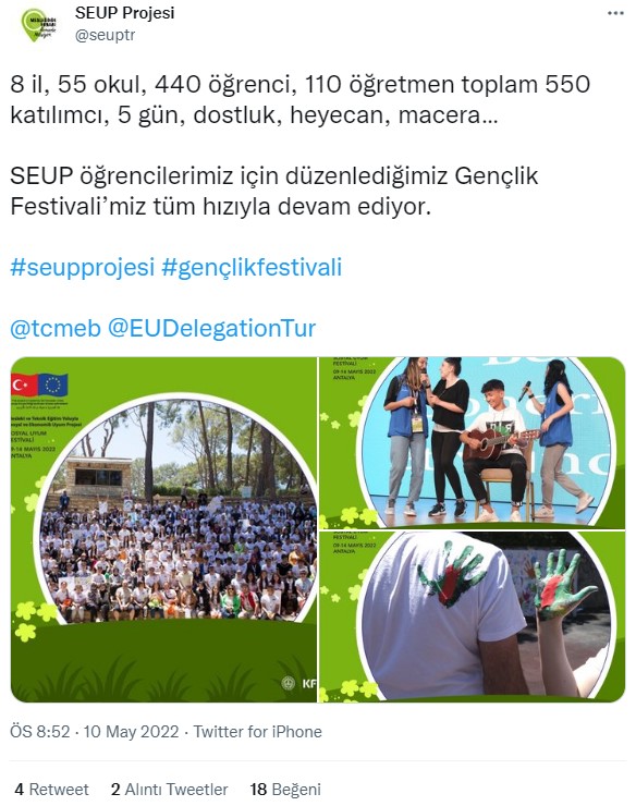 - Antalya’da düzenlenen Gençlik Festivali, MEB’in bütçesinden değil, Avrupa Birliği FRIT Fonu kapsamında SEUP projesi içerisinde düzenleniyor.