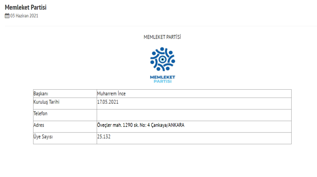 Yargıtay’ın sitesinden Memleket Partisi’nin üye sayısına bakıldığında toplam üye sayısının 25.132 olduğu görülüyor.