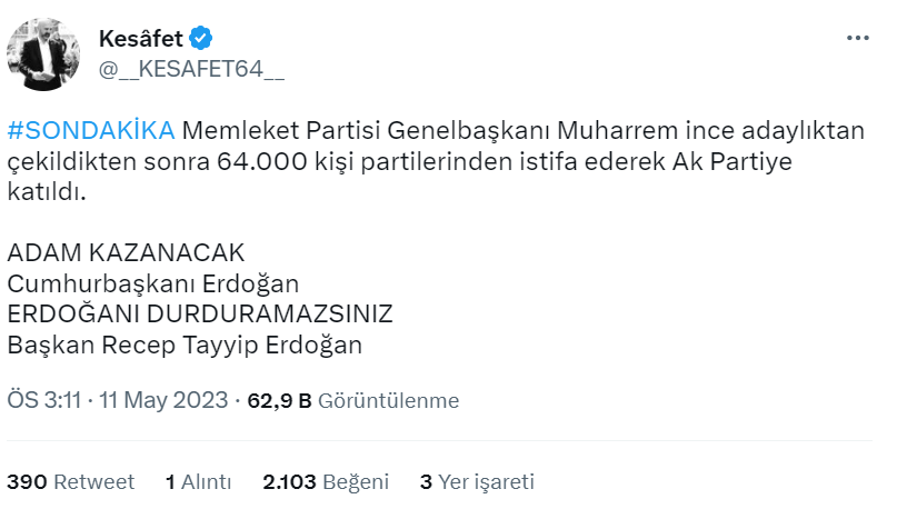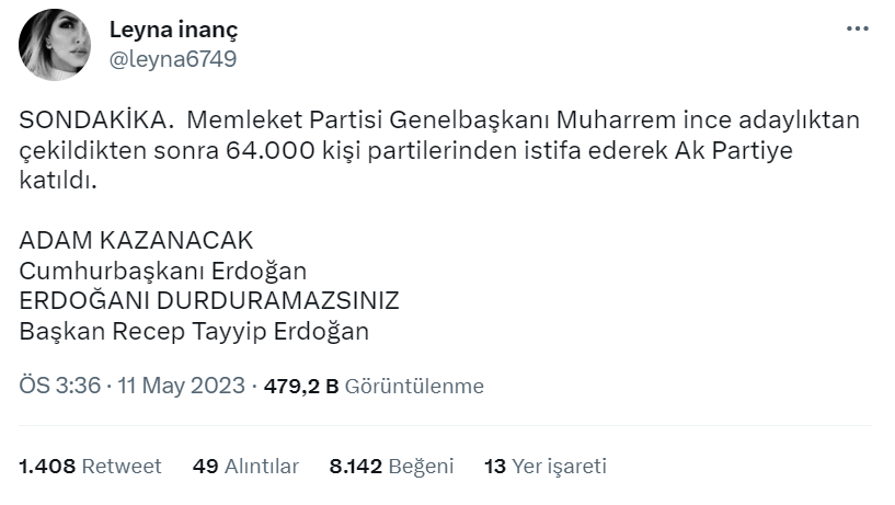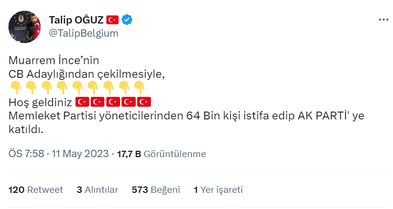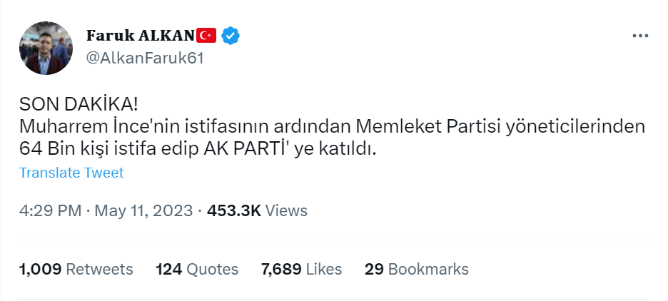 Bu açıklama gündemde yer alırken bazı iddialarda ortaya atıldı. Sosyal medyada yayılıma giren paylaşımlardan birisi de Memleket Partisi’nin 64 bin üyesinin üyelikten istifa edip AK Parti’ye geçtiği iddiasıydı.