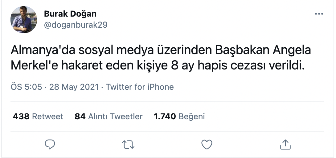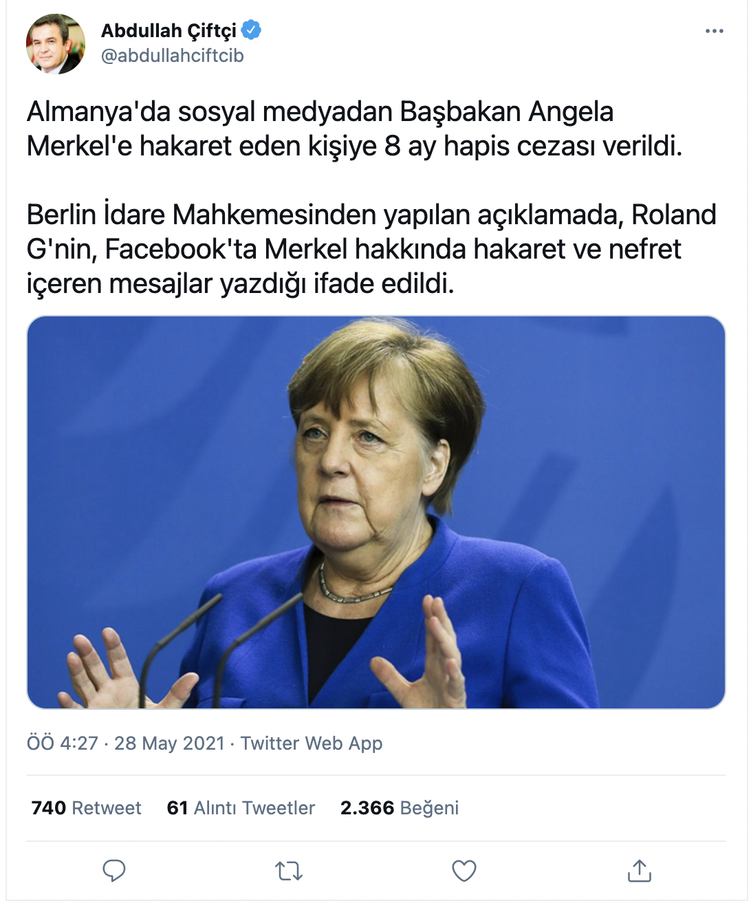 Alman haber sitelerine göre söz konu kişi hakaretten değil. Nefreti körüklemek ve suça teşvik etmekten ceza aldı. Nefret suçlusu bu kişi göçmenlerin ve sığınmacıların yok edilmesi gerektiğini belirtti. Almanya’da hakaret, iftira ve karalama da suçtur. Ayrıca, Cumhurbaşkanı’na hakarette suçtur. Bu sebeplerle de söz konusu iddialar çoğunlukla yanlıştır.