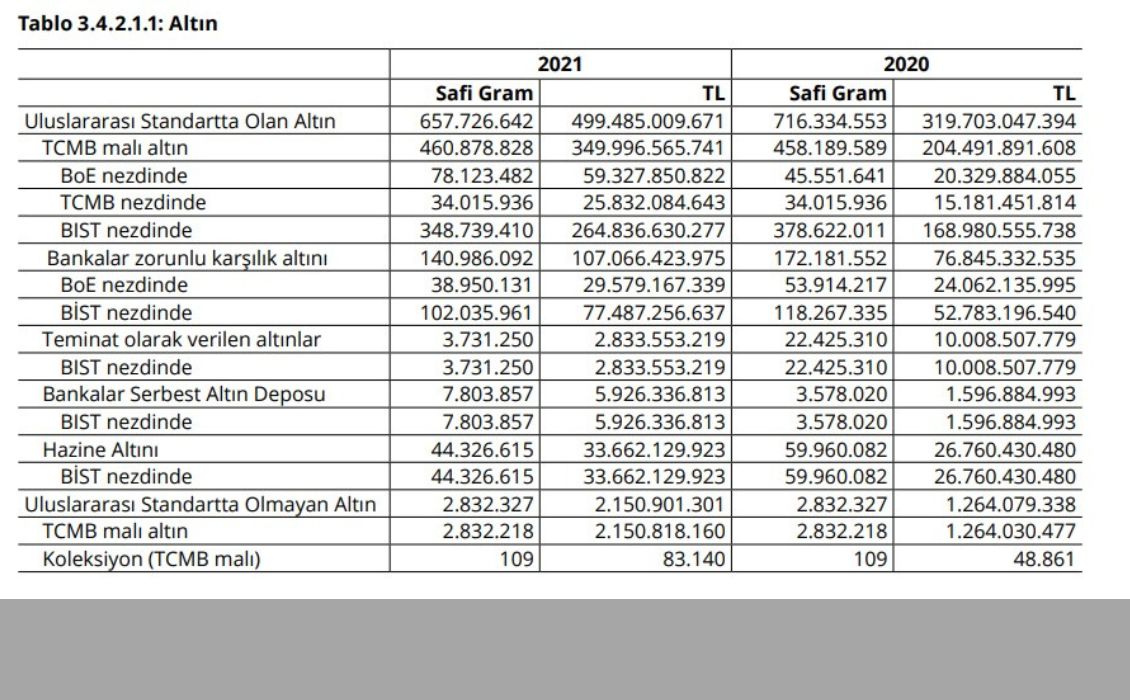 TCMB’nin 2021 yılının sonunda yayınladığı raporu incelediğimizde toplam Uluslararası Standartta Olan Altın mevcudunun 657,7 ton olduğu görülüyor. Bunun 460,9 tonu Türkiye Cumhuriyet Merkez Bankası’na ait iken 141 ton altını bankalar zorunlu karşılıklar için TCMB’de tutuluyor. TCMB’ye ait 78,1 ton altının ve zorunlu karşılık olarak tutulan altının ise 38,9 tonu Birleşik Krallık Merkez Bankası’nda tutuluyor. Yani Londra’da yer alan Merkez Bankası’nda 117 ton altını bulunuyordu. Bu altın miktarının gündeme gelmeden 5 ayda 400 tona çıkması pek mümkün değil.