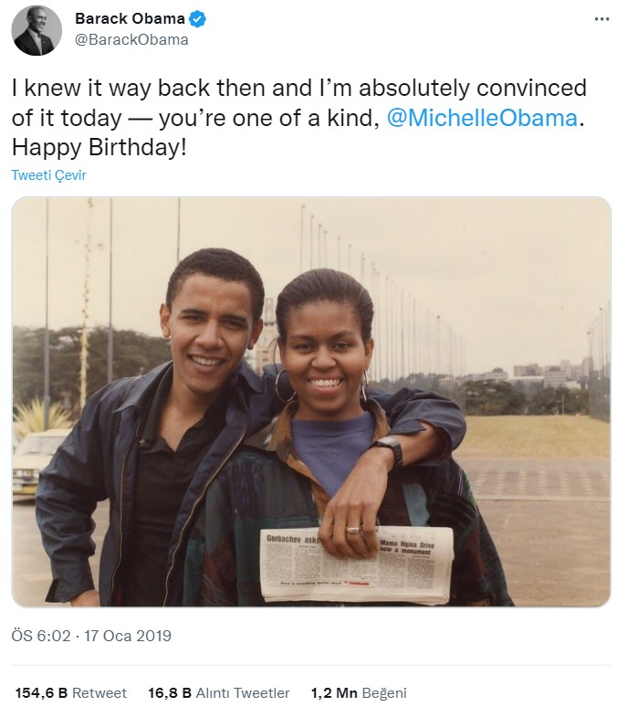 Michelle Obama’ya ait olduğu iddia edilen bir diğer fotoğrafı da yine aynı şekilde tersine görsel arama yöntemi ile arattığımızda, bu sefer Barack Obama’nın Twitter hesabındaki gönderiye ulaşıyoruz. Obama’nın, 2019’da paylaştığı ve eşi Michelle ile yan yana bu fotoğrafın da tıpkı diğerinde olduğu gibi üzerinde oynamalar yapıldığını görüyoruz.