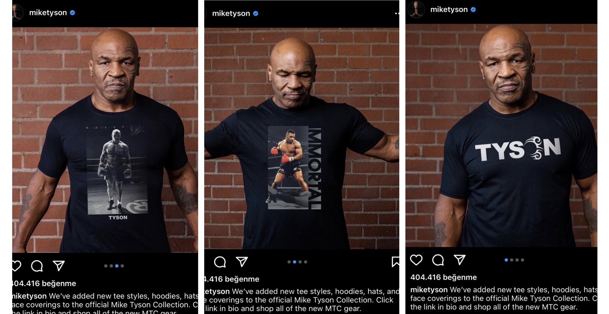 Fotoğrafın gerçekliğine dair bilgiyi asıl kaynağa ulaşarak elde edeceğimizi düşünerek Tyson’ın resmi Instagram hesabını ziyaret ettik. Ünlü boksörün 23 Kasım 2020 tarihinde paylaştığı bir post bize fotoğrafın orijinal halini görme imkanı sağladı. Tyson’ın paylaşımlarında resmi markası olan Mike Tyson giyim koleksiyonuna yeni ürünler ekledikleri haberini takipçileriyle paylaşmış olduğu görülüyor. İncelediğimizde koleksiyonun temasının Tyson’ın boks müsabakaları olduğu tespit ettik.