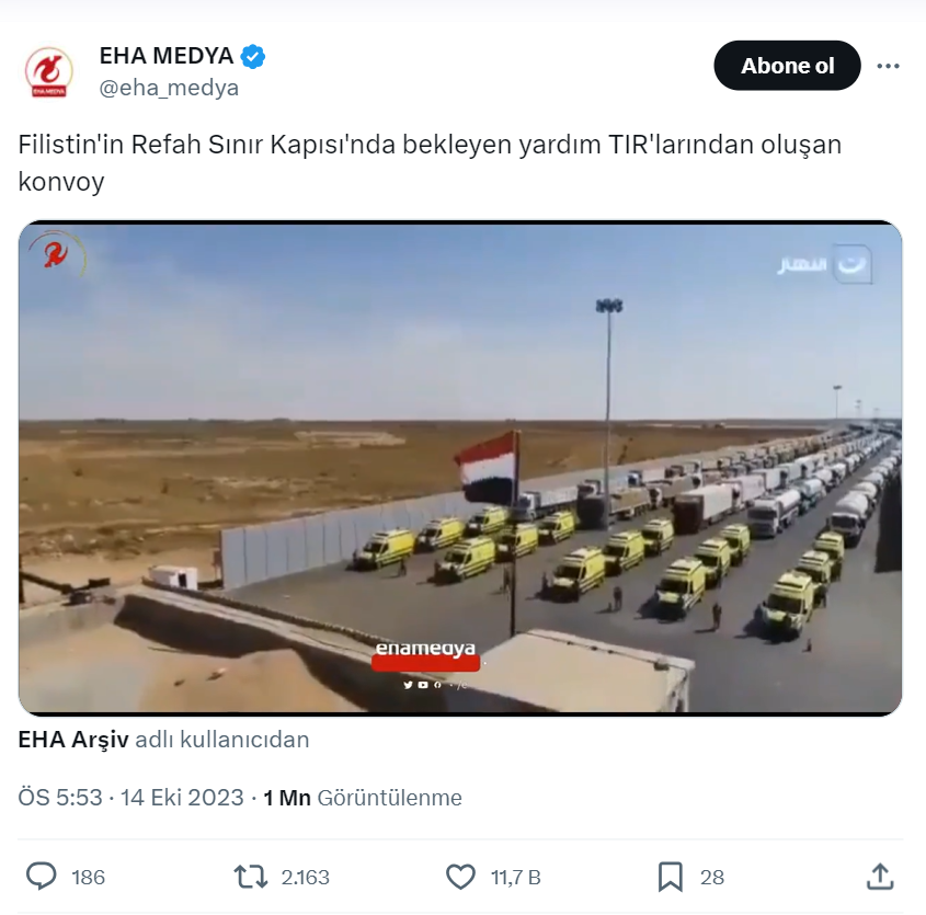 Mısır – Gazze sınırındaki yardım konvoyunu gösteren videonun güncel olduğu iddiası