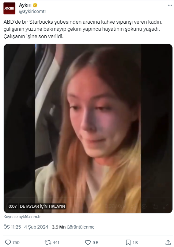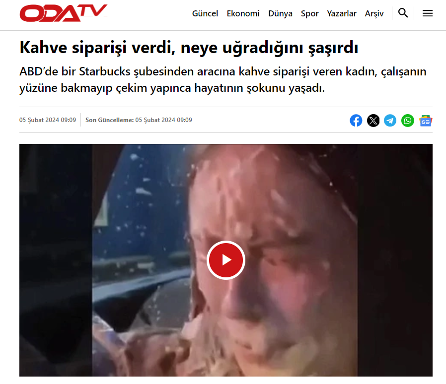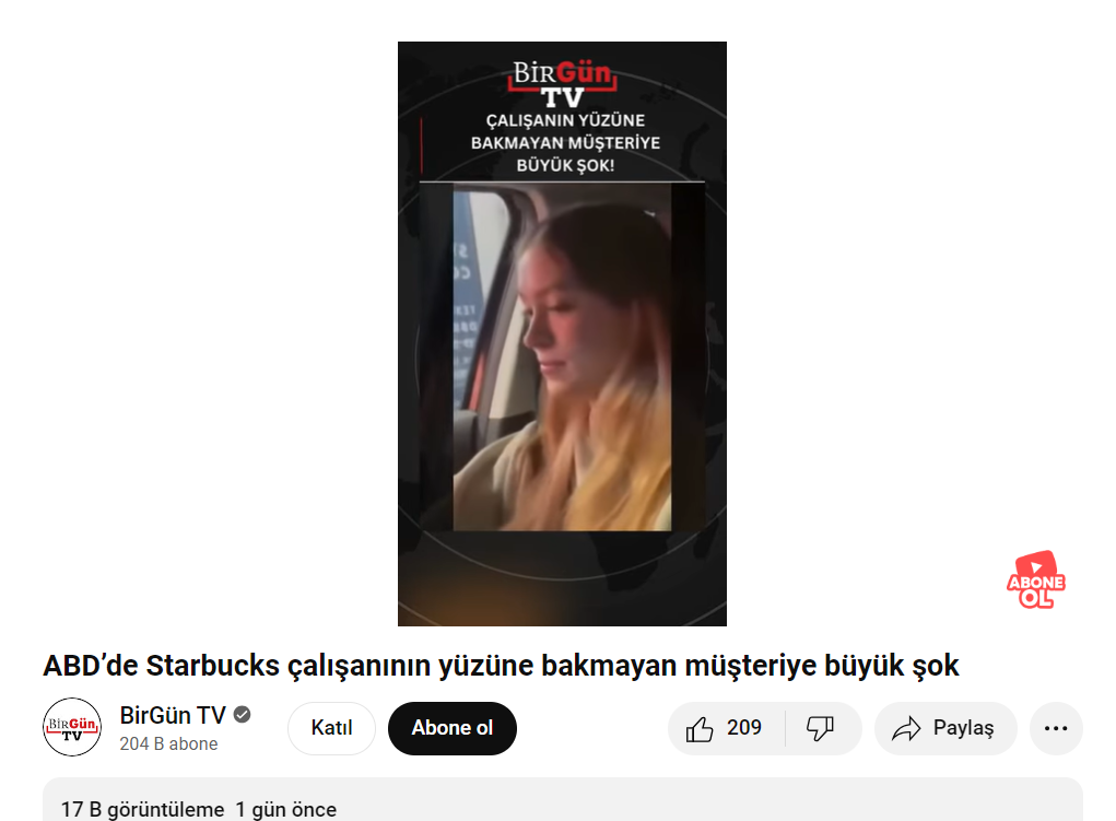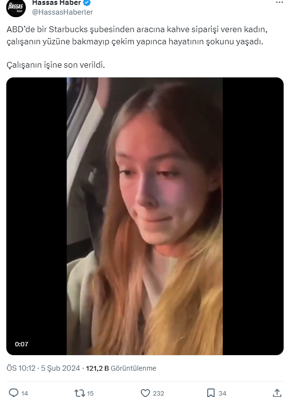 Sonuç olarak söz konusu video bir TikToker tarafından çekilen mizahi bir kurgu. Üstelik Starbucks’ta da çekilmemiş.